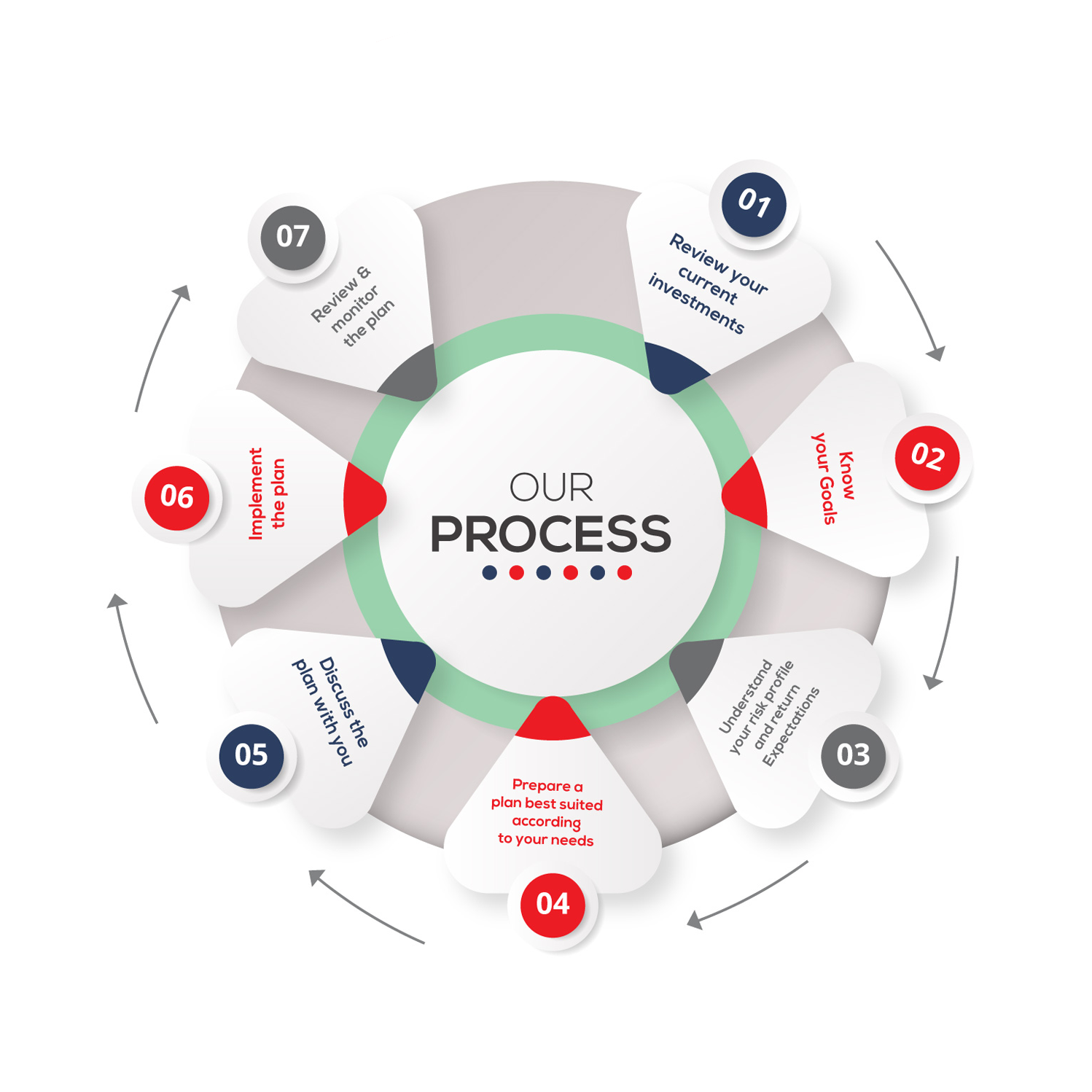 We sit with you and understand your risk profile, your requirements, your goals and help you make a plan which takes care of your Emergency funds for business downturn or job loss, Insurance policy according to your income or lifestyle and Investments according to your goals.